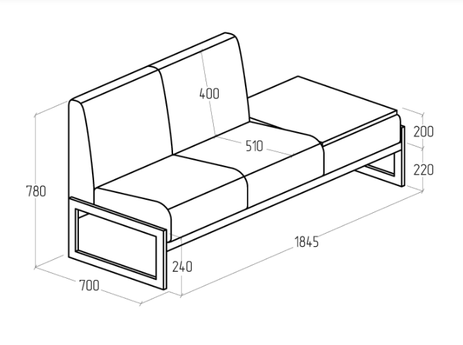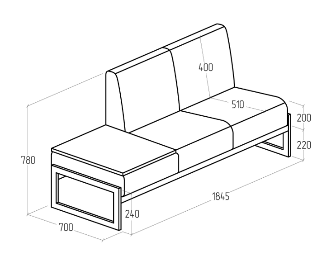 Главная / Мягкая офисная мебель / Коллекция диванов "Everprof Solo" / Диван Everprof Solo двухместный со столиком справа/слева Металл Черный