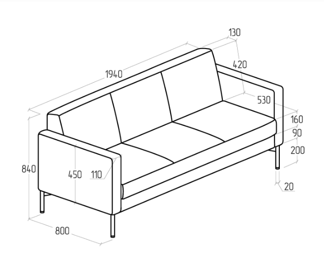 Размер: 1940х800х840