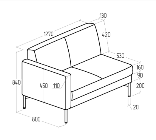 Главная / Мягкая офисная мебель / Коллекция диванов "Everprof Gamma" / Модуль Everprof Gamma с подлокотником двухместный правый/левый