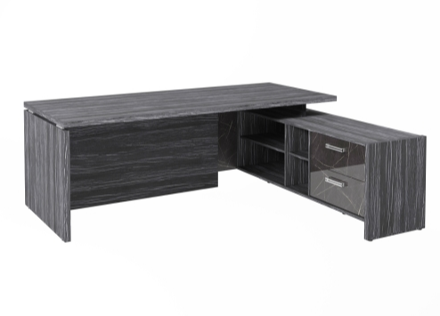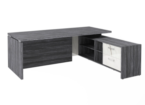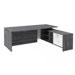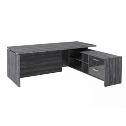 Столешница, бок стола и бок тумбы выполнены из ЛДСП толщиной 38 мм. Цвет - "Древесина Графит". Кромка 2 мм.