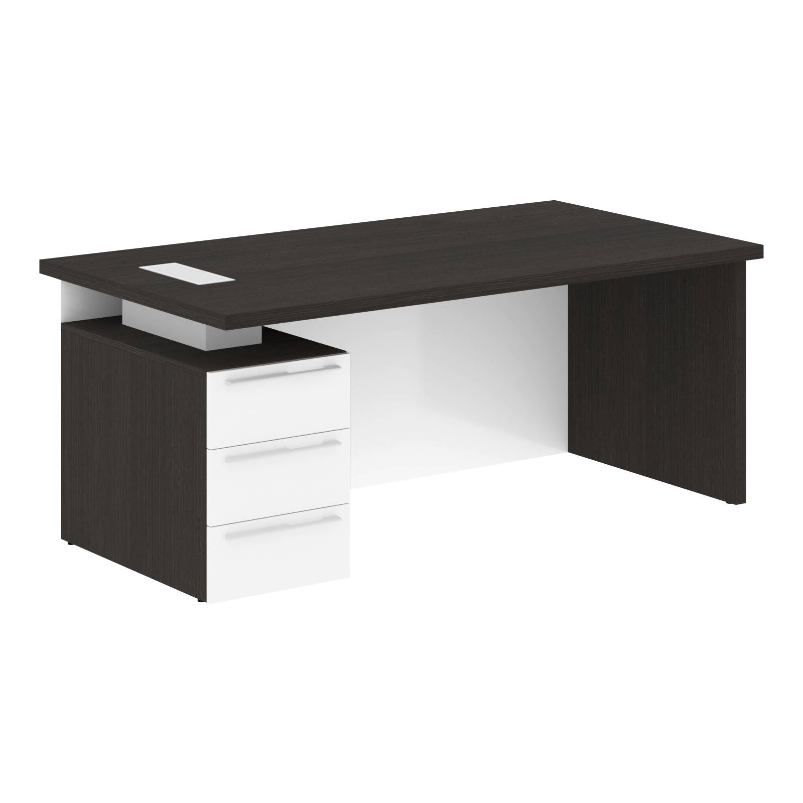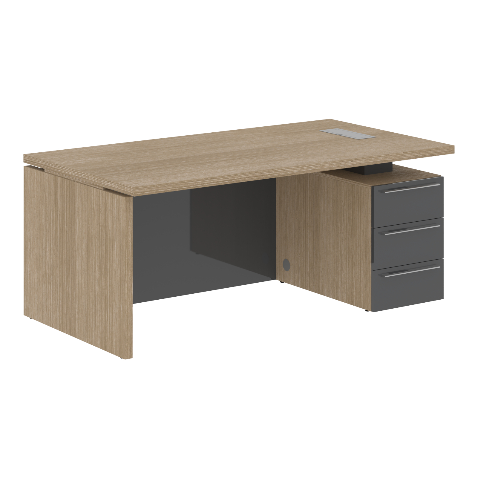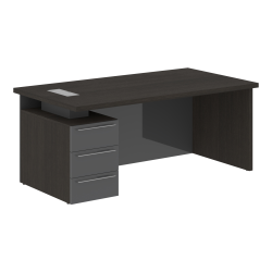 Столешница, опора из МДФ т.39мм, облицованы шпоном с защитно-декоративным покрытием. Царга из МДФ т.18мм с защитно-декоративным покрытием "высокий глянец", высота 711 мм. Каркас тумбы из МДФ т.18 мм, облицован шпоном с защитно-декоративным покрытием. Ящики из ЛДСП т.18мм, торцевые поверхности защищены кромкой ПВХ т.1 в цвет. Направляющие ящиков - шариковые 450мм с доводчиками. Фасады из МДФ т.18мм с защитно-декоративным покрытием "высокий глянец". Ручки металлические ORION 320/340. Проставки в столе из МДФ т.16 мм с защитно-декоративным покрытием "матовый". Заглушка кабель-канала и ручка в цвет проставок стола. Опоры регулируемые.