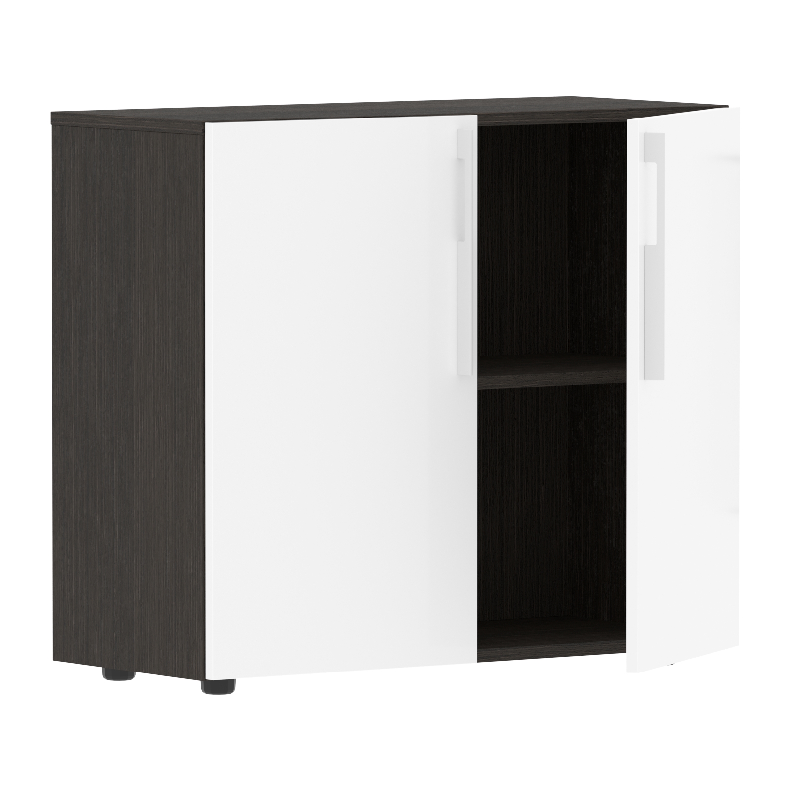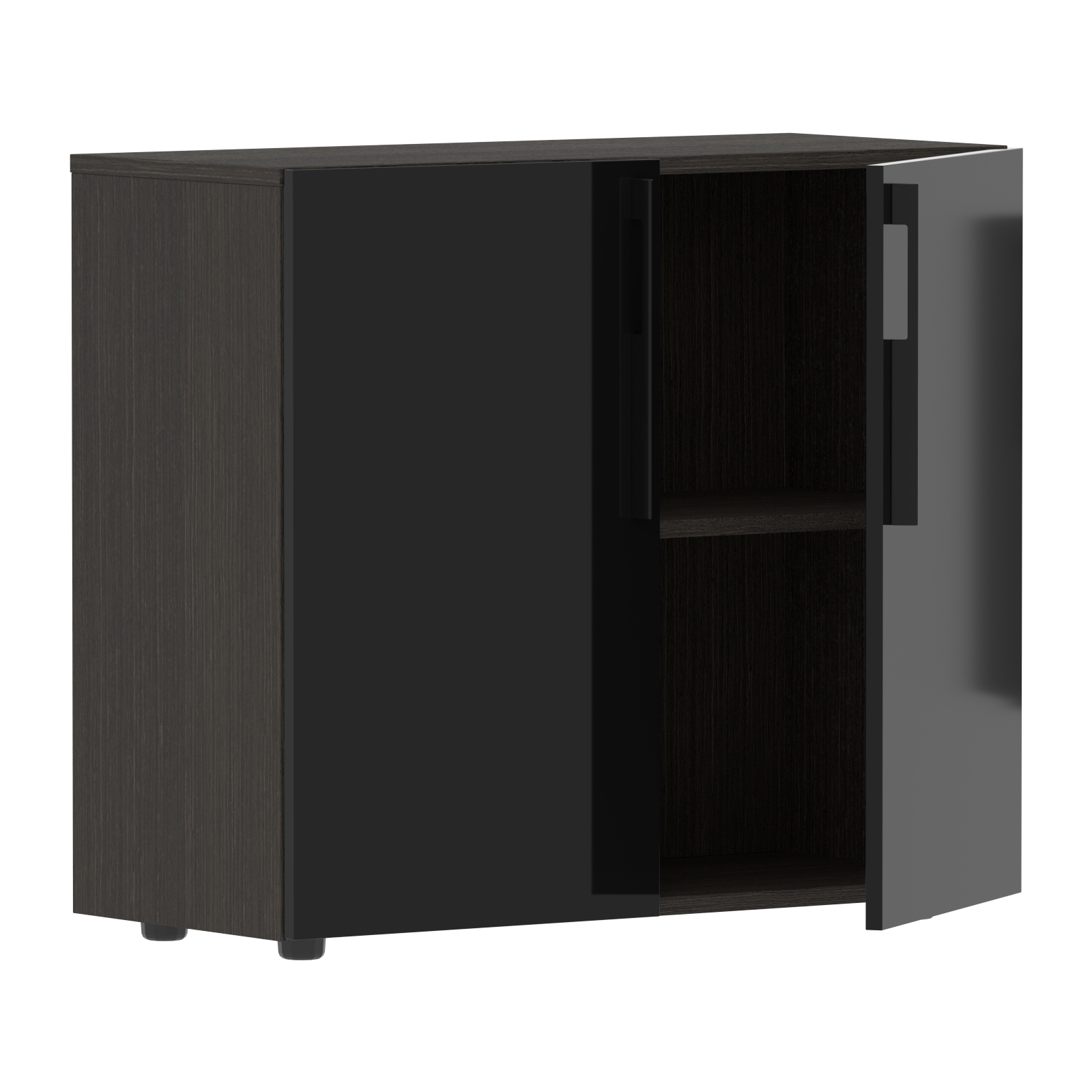Каркас из МДФ т.18 мм, облицован шпоном с защитно-декоративным покрытием. Полки из ЛДСП т.18 мм, торцевые поверхности защищены кромкой ПВХ т.1мм в цвет. Фасады из МДФ т.18мм с защитно-декоративным покрытием "высокий глянец".