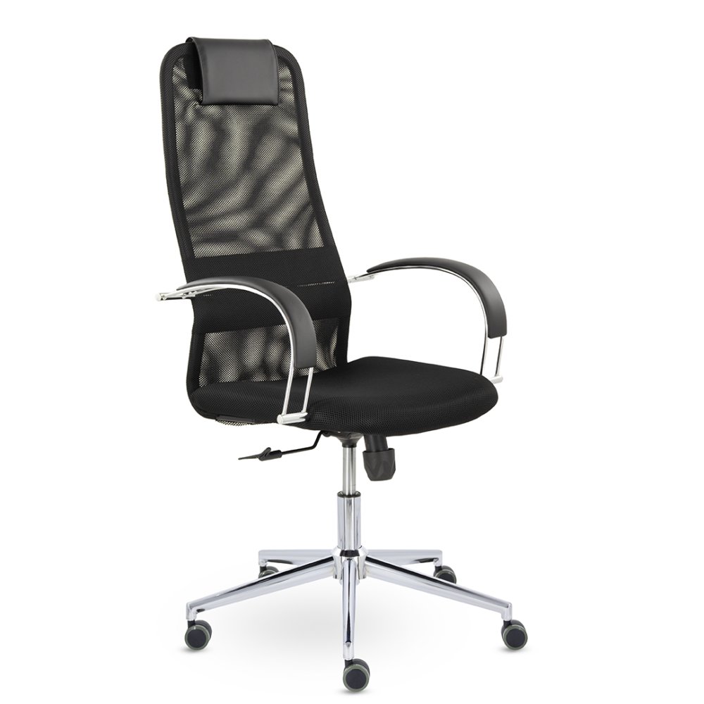 Стильное кресло повышенного комфорта с высокой эргономичной спинкой и мягким подголовником подходит как сотрудникам, так и руководителям. Оно оснащено широкими двусторонними подлокотниками и механизмом качания Топ-Ган. Эта модель прекрасно дополнит интерьер открытого офиса или домашнего кабинета. Максимальная нагрузка до 150 кг.