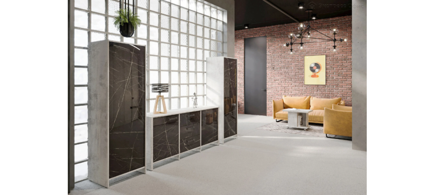 Тумба трехсекционная с 2 дверьми в алюминиевом профиле Хромикс белый